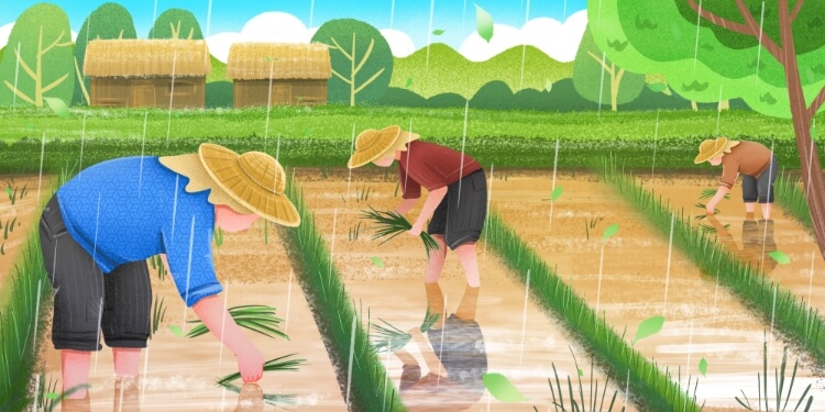 雨生百谷。雨量充足而及時,谷類作物能茁壯成長
